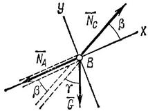 В тех случаях, когда определяются модули сил, направления которых заданы, каждую из осей целесообразно расположить перпендикулярно к направлению искомых сил. Тогда в каждое уравнение равновесия войдет только одно неизвестное.