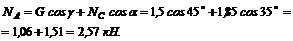 Итак, реакции стержней (их действия на шарнирный болт В) равны NA = 2,57 кН и NС = l,85 кН. Точно с такими же усилиями действует шарнирный болт на стержни. Стержень АВ растянут силой 2,57 кН, а стержень СВ сжат силой 1,85 кН.