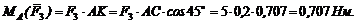 3. Момент силы F3 относительно точки А положительный. Из треугольника АКС плечо силы F3 AK = ACcos 45°, следовательно,