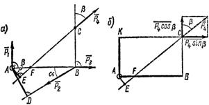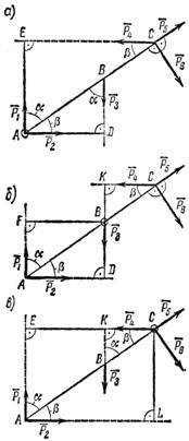 Задача 15. Определить моменты относительно точки А сил P1 = 40 H; P2 = 60 H; Р3 = 030 H и Р4 = 50 H, приложенных в точках A, В и С, как показано на рис. 27, а. Углы a = 30°, b = 50°, АB = 2,5 м; ВС = 1,5 м.