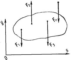 Пусть к телу будет приложена система сил F1, F2, F3, …, Fn, линии действия которых параллельны друг другу (рис. 35). Так как ось х перпендикулярна всем силам, то условие