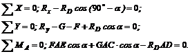 4. Составим три уравнения равновесия, так как активные силы и реакции связей составляют произвольную плоскую систему сил: