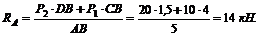 3. Составим систему уравнений равновесия, приняв для одного уравнения за центр моментов точку А, а для другого – точку В: