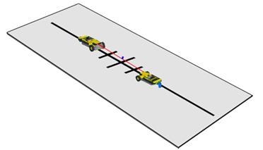 · Две команды соединяют своих роботов канатом и устанавливают их на игровое поле таким образом, как показано на рисунке:
