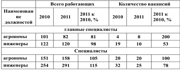 Таблица 4 - Потребность предприятий агропромышленного комплекса Ленинградской области в специалистах с высшим и средним профессиональным образованием