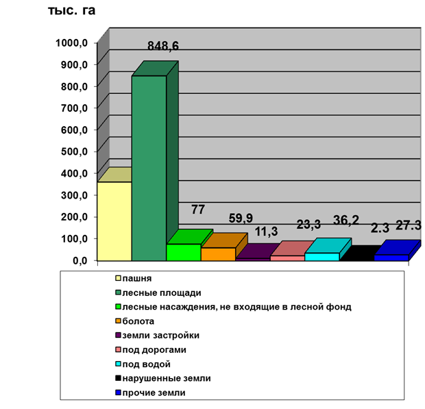 Основная доля сельскохозяйственных угодий сосредоточена в категории земель сельскохозяйственного назначения (619,4 тыс. га или 77,5%). Значительные площади (106,6 тыс. га) находятся на территории населенных пунктов (в основном в черте сельских населенных пунктов), что составляет 45,4% от общей площади этой категории. В земельном запасе сосредоточено 29,9 тыс. га сельхозугодий.