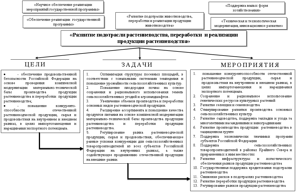 В связи с этим мероприятия, предусмотренные вышеприведенной программой (Рисунок 19), на наш взгляд, являются недостаточными и не позволяют решить все задачи продовольственной безопасности и повышения конкурентоспособности растениеводческой продукции на международном уровне.