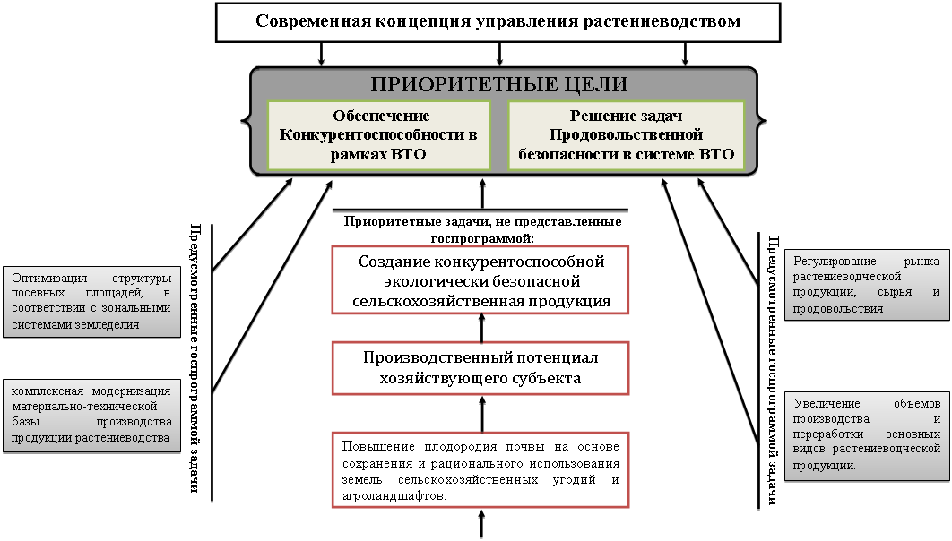 1. В качестве ключевых стратегических направлений предлагается новая организация производственных отношений в растениеводческой отрасли, основанных на рациональном использовании производственного потенциала - с одной стороны, и формировании эффективной системы управления им – с другой. Необходимо ориентирование систем управления на повышение эффективности функционирования предприятий путем специализации их на производстве экологической продукции и создания условий для формирования рынка отечественной высококачественной продукции, а также управления рациональным использованием земельных ресурсов за счет внедрения адаптивных систем земледелия