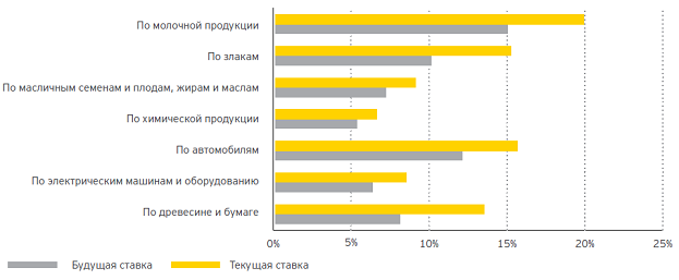 В частности, средние максимальные пошлины после окончания периодов, отведенных на исполнение обязательств, составят: