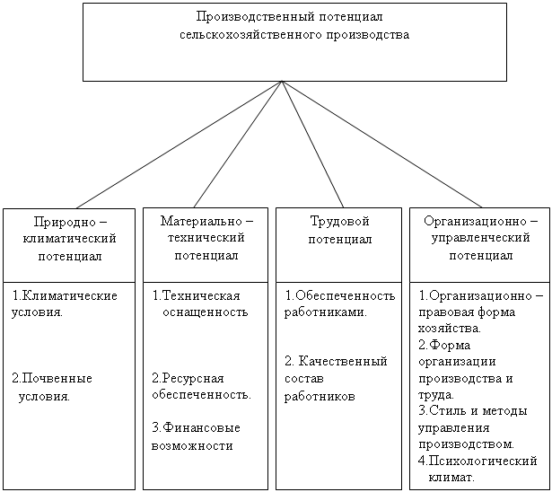 Из данной схемы следует, что элементами производственного потенциала и производственных сил являются рабочая сила и средства труда. Предметы труда как элементы производительных сил не входят в состав производственного потенциала, а природные ресурсы в сельском хозяйстве непосредственно входят в состав производственного потенциала.