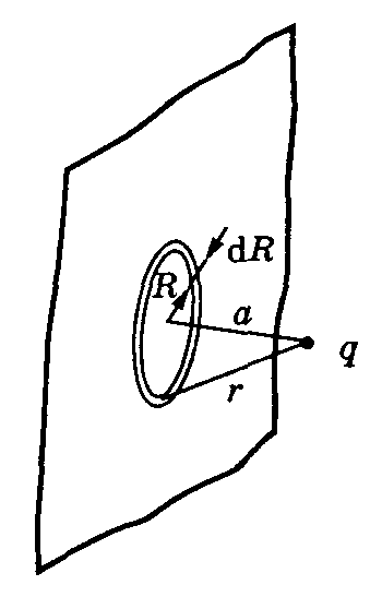 Точки этой окружности имеют одинаковую поверхностную плотность заряда. Тогда чтобы найти суммарный индуцированный на пластине заряд, необходимо выделить элементарную площадку