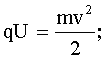 А = ΔW. Работа в электрическом поле равна произведению заряда на разность потенциалов: А = qU. Начальная кинетическая энергия равна нулю, поэтому ΔW = W. Следовательно: