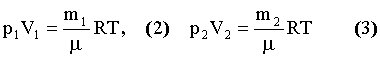 где m1 и m2 - масса газа в первом и во втором сосудах; μ - молярная масса; R - газовая постоянная.
