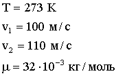 Задача 2. Какая часть молекул кислорода при температуре Т = 273 К обладает скоростями, лежащими в интервале от v1 = 100 м/с до v2 = 110 м/c? Чему равна наиболее вероятная скорость движения молекул?