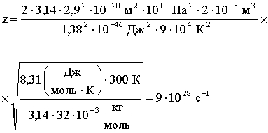 где N - число молекул в сосуде объемом V, < z > - среднее число соударений одной молекулы за 1 с.