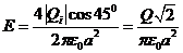 полей, созданных 2-м и 4-м зарядами в точке С, имеют одинаковое направление и равны по модулю: