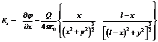 Проекции вектора напряженности на оси координат находятся дифференцированием выражения (1) так как