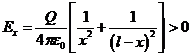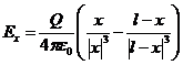 Теперь легко получить выражения для напряженности электрического поля вне указанной области (с учетом знака зарядов):