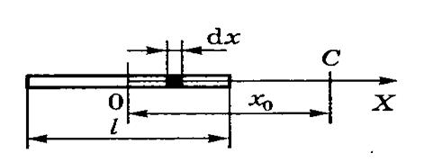 Решение. Ситуация, описанная в задаче, схематично изображена на рисунке 5. Здесь электрическое поле создается зарядом, распределенным по стержню. В этом случае очень трудно установить точное расположение силовых линий, поэтому для определения характеристик электростатического поля будем использовать принцип суперпозиции. Для этого разобьем стержень на элементарные участки длины