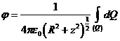 Потенциал результирующего поля получим интегрированием выражения (1) по всему заряду: