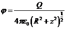 . Тогда потенциал электрического поля в точках на оси кольца равен: