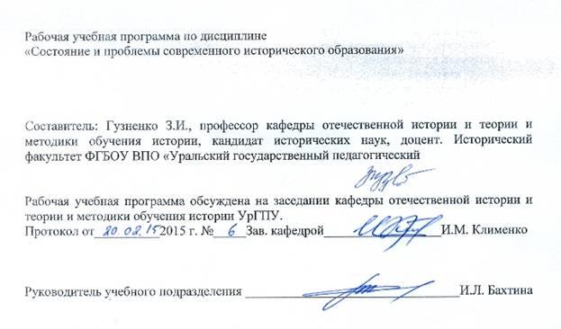 по дисциплине «Состояние и проблемы современного исторического образования»