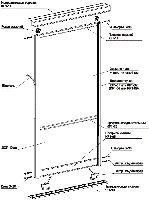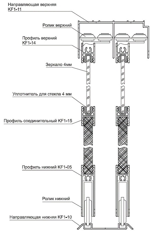 Конструкция дверей шкафов – купе представлена на рис.1 и рис.2.
