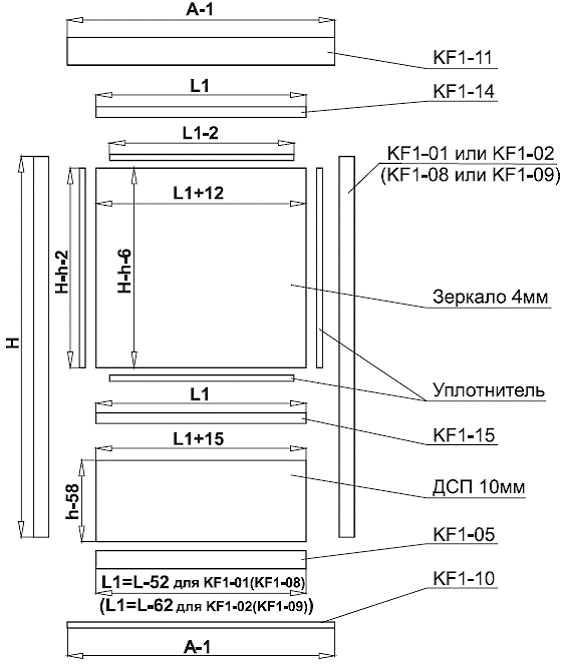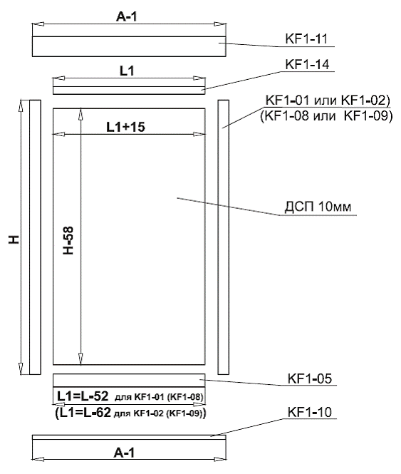 L = А / 2+16 – если вертикальный профиль KF1-02 (KF1-09)