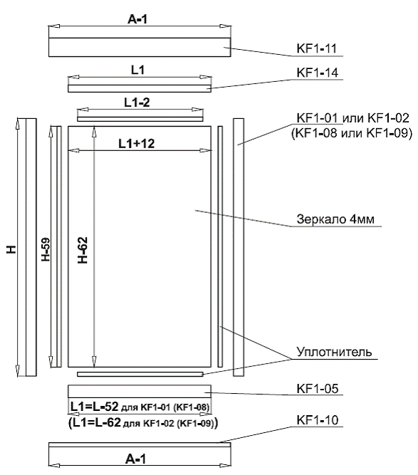 - Для двух створок L = А / 2+13 – если вертикальный профиль KF1-01 (KF1-08)