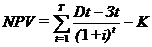 где NPV – чистый дисконтированный доход или чистая текущая стоимость;