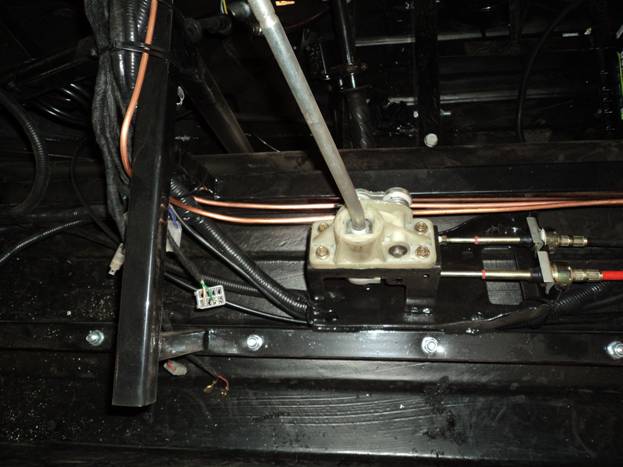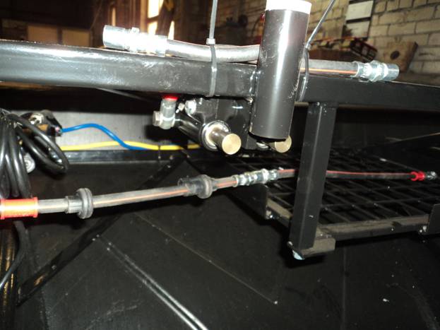 2) Подключить троса переключения передач к коробке передач, причем сначала красный трос, затем черный( обратить внимание как идет черный трос - через отверстие в нижнем профиле)