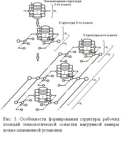 Процесс формирования структуры рабочих позиций технологической оснастки вакуумной камеры ионно-плазменной установки (рис. 1) основывается на следующем.