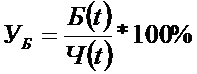 Уровень безработицы (УБ) - это отношение числа лиц, имеющих соответствующий статус безработного (Б(t)), к численности трудоспособного населению в трудоспособном возрасте или экономически активного населения (число занятых в народном хозяйстве и безработные) (Ч(t)):