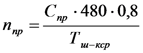 где 480 - расчетный фонд времени работы станка в смену, мин;