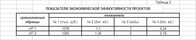 В табл. 2 приводятся показатели экономической эффективности проектов: NPV (№ 1), PI (№ 2), MIRR (№ 3), PP (№ 4).