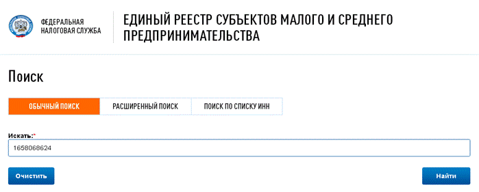 В едином реестре субъектов малого и среднего предпринимательства найти организацию или ИП можно по ИНН, ОГРН, ОГРНИП или названию. Введите один из реквизитов в строку поиска и нажмите кнопку «найти». В результатах вы увидите название компании, ее категорию, регион и дату включения в реестр. Саму выписку можно скачать в формате PDF.