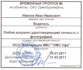 ПРИЛОЖЕНИЕ 3. ЗАЯВКА НА ОФОРМЛЕНИЕ ВРЕМЕННЫХ ПРОПУСКОВ