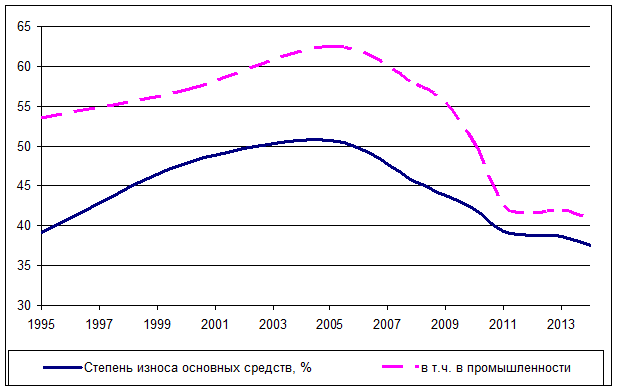 Рис. 2. Динамика степени износа основных средств в белорусской экономике (Источник – Белстат).
