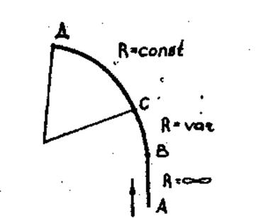 ). Поэтому между прямолинейным участком дороги и круговой кривой обязательно должен быть переходной участок ВС переменной кривизны.