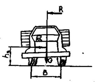 Если автомобиль движется на повороте с постоянным радиусом и скоростью по горизонтальной дороге и на него не действуют никакие другие боковые силы, кроме центробежной (рис.3.3), то его предельная скорость (в километрах в час), при которой не исключается опрокидывание, определяется по формуле