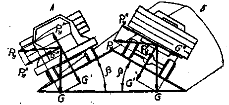 При движении автомобиля по дороге с поперечным уклоном боковой силой является составляющая массы. При криволинейном движении эта сила может складываться с центробежной силой. На рис. 3.8 показаны два автомобиля, движущиеся по криволинейному участку: автомобиль А – по внешнему краю дороги, автомобиль Б – по внутреннему1) .