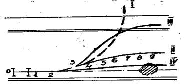 Возможно различные способы маневрирования. При возникновении препятствия на дороге водитель может либо, повернув рулевое колесо, удержать его в этом положении, как показано на рис. 4.1 (кривая I), либо вывести автомобиль на соседнюю полосу (кривые II-IY).