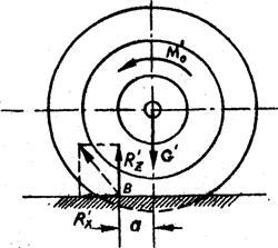 Качение ведущего колеса происходит под действием приложенного к нему крутящего момента Мo'. В этом случае тангенциальная реакция дороги направлена в сторону движения и является движущей силой (рис.1.3).
