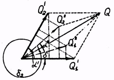 Рис. 6.5. Взаимосвязь векторов количества движения транспортных средств до и после столкновения.