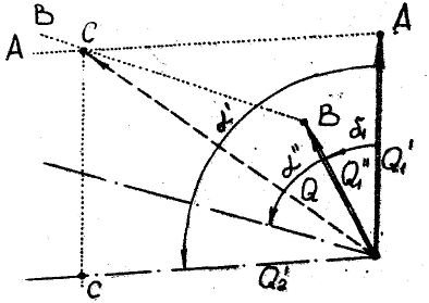 Необходимые для решения задачи направление и величина вектора равнодействующей количества движения определяются по точке пересечения прямых
