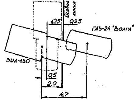Рис. 6.13. Смещение транспортных средств при столкновении автомобилей ЗИЛ-130 и ГАЗ-24 «Волга»