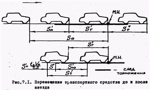 Рис. 7.1. перемещение транспортного средства до и после наезда