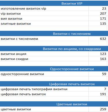 Следовательно, на данном шаге необходимо просмотреть список запросов и разделить его на две группы: целенаправленные пользователи (категории 2 и 3) и интересующиеся пользователи (все остальные категории).