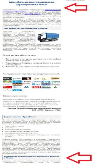 Клиент вводит в Яндекс запрос, например, «перевозка по жд в Магадан» и сразу попадает на страницу с соответствующим заголовком и ценами.