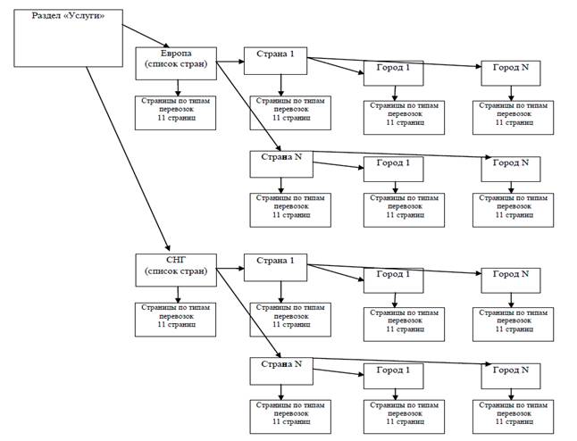 Структуру можно проектировать либо в виде интеллект-карт, либо просто отрисовывать в ворде разные уровни структуры сайта, примерно вот так: